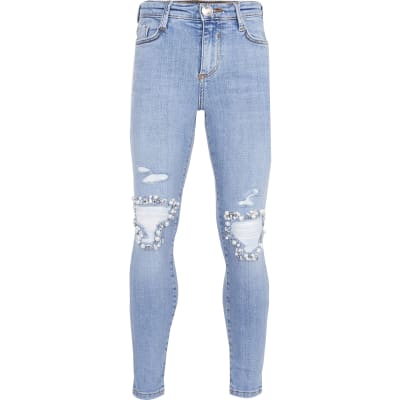 Black sequin bodycon dress. Shop the new collection of clothing footwear accessories beauty products and more. Similar products also available. Shop our new Mini girls blue embellished mom jeans at River Island today. Fast delivery full service customer support. Buy River Island Womens Blue Mid Embellished Ripped Boyfriend Jeans. Shapes variados calças que apresentam inovação easy fit e ultra stretch.